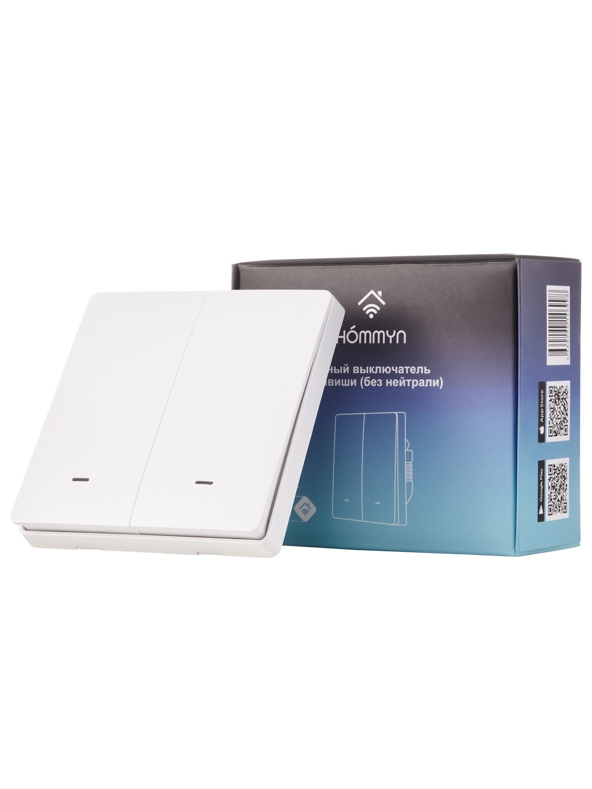 Выключатель HOMMYN настенный zigbee 2 клавиши (без нейтрали)