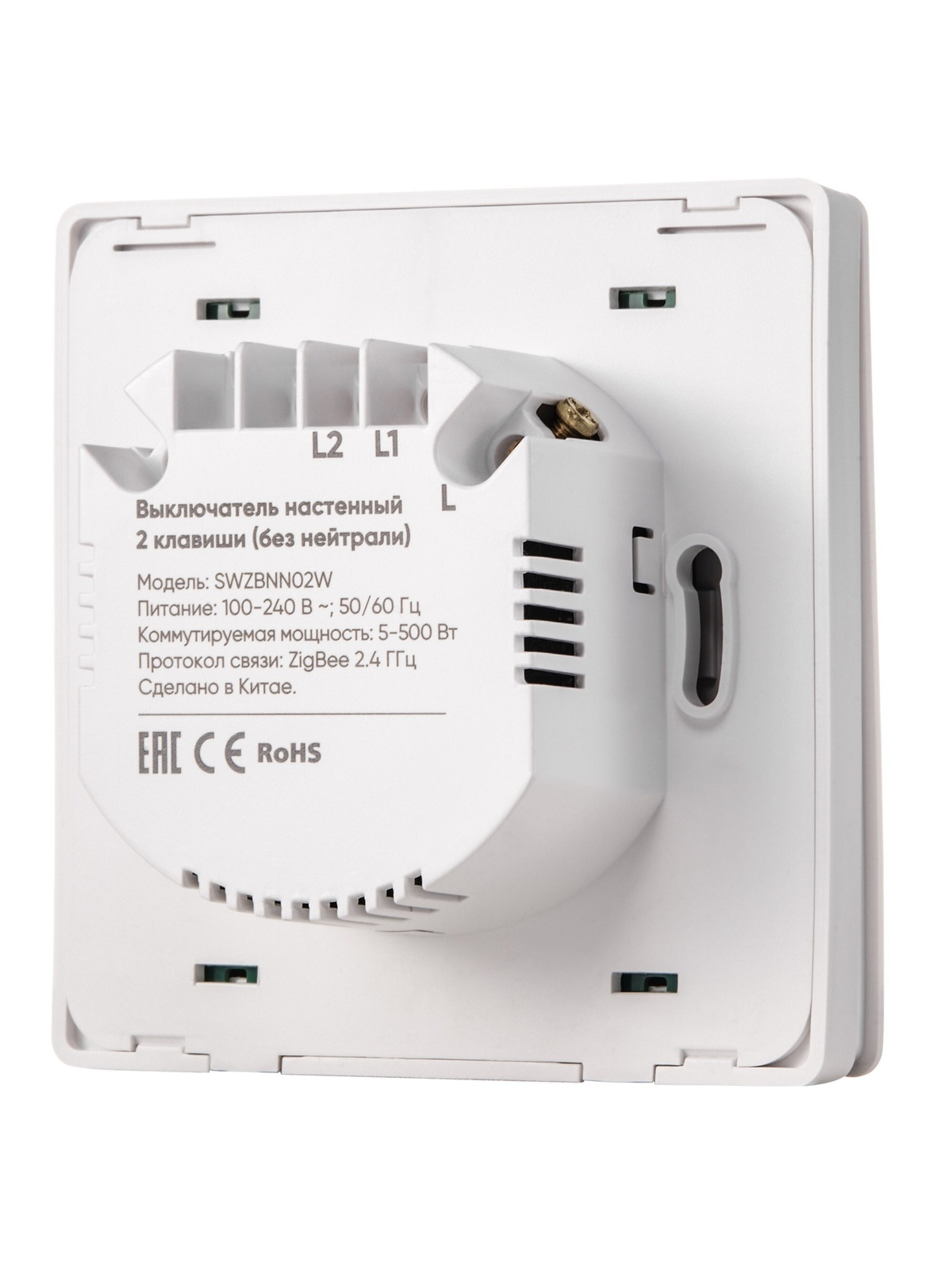 Двухклавишный умный выключатель выполнен в стильном, безрамочном, минималистичном дизайне, с приятным тактильным нажатием клавиш со светодиодными индикаторами. Управляет включением и выключением освещения с кнопки, удаленно через приложение или с помощью голосового помощника Алиса или Маруся. Работает с приложением Hommyn, для подключения требуется Zigbee хаб Hommyn. Подключается напрямую к станциям Алиса от Яндекс с Zigbee и работает в приложении Умный Дом с Алисой. Компактный размер позволяет провести монтаж в стандартный круглый подрозетник вместо обычного «неумного» выключателя. Для подключения выключателя требуется только питающая линия L, нулевая линия N (нейтраль) не требуется.