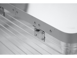 Качественный ящик из профилированного алюминия, предназначенный для хранения и перевозки оборудования или груза. Стенки ящика выполнены из штампованного листового алюминия и усилены ребрами жёсткости по верхнему и нижнему периметру. Крышка ящика надёжно фиксируется стальными петлями, а ей прилегание к стенкам ящика обеспечивается через уплотнительный материал. Замки ящика имеют возможность опломбировки. Удобные складные ручки обеспечивают удобный хват при транспортировке.