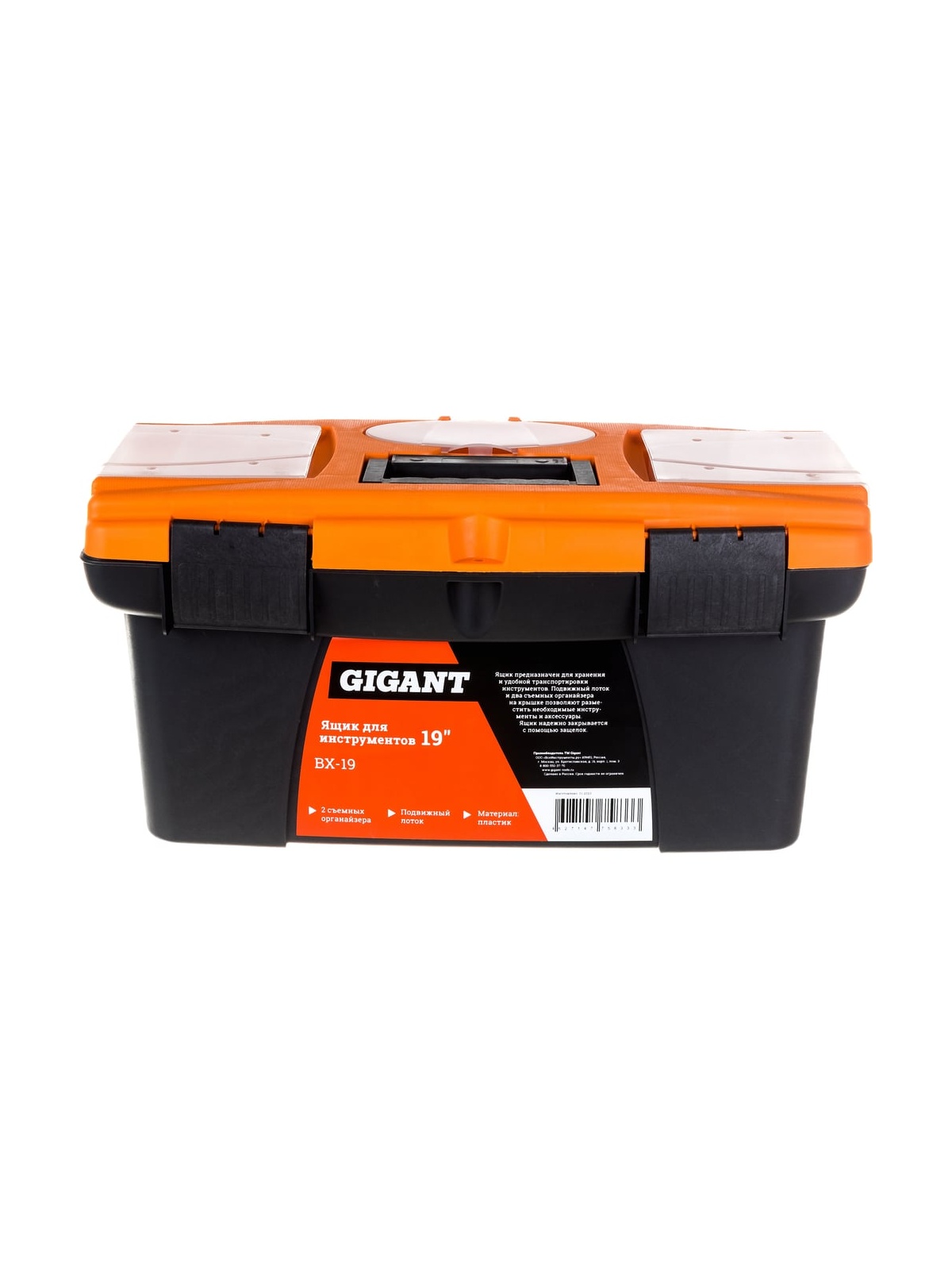 Ящик для инструментов 19" Gigant BX-19 служит для хранения ручного инструмента и различных мелочей. Имеет удобную и прочную ручку для переноски. Кейс надежно запирается, выпадание инструмента во время транспортировки исключено. Габариты ящика (ДхШхВ): 490х240х275 мм. Прочный пластик легко выдерживает сложные условия эксплуатации и позволяет без труда носить его с собой. В верхней части ящика предусмотрены съемные органайзеры для крепежа, чтобы он всегда был под рукой во время ремонта. Внутри ящика предусмотрен лоток для организации хранения плоских инструментов. Внимание! Важная информация о нагрузке: Статическая нагрузка на рукоятку - не более 12 кг. Статическая нагрузка на крышку - не более 40 кг. Статическая нагрузка на днище - не более 60 кг. Продукция представлена профессиональными и бытовыми инструментами, имеет доступную цену и высокое качество. При изготовлении товаров Gigant используется современное оборудование и прочные материалы. Производство осуществляется на современных предприятиях России и Азии. Тестирование товаров осуществляется в два этапа, каждая партия инструментов проходит проверку на соответствие стандартам и заявленным техническим характеристикам. Это является залогом качества и надежности готового продукта. Продукция представлена широкой линейкой инструментов. У нас можно приобрести ручной инструмент, строительный, садовый, сантехнический, климатический, крепежный, автогаражный, а также станки, расходные материалы и многое другое.