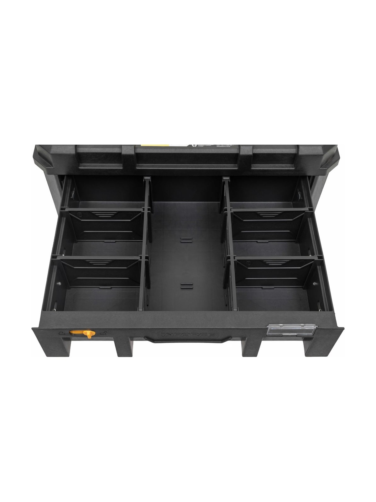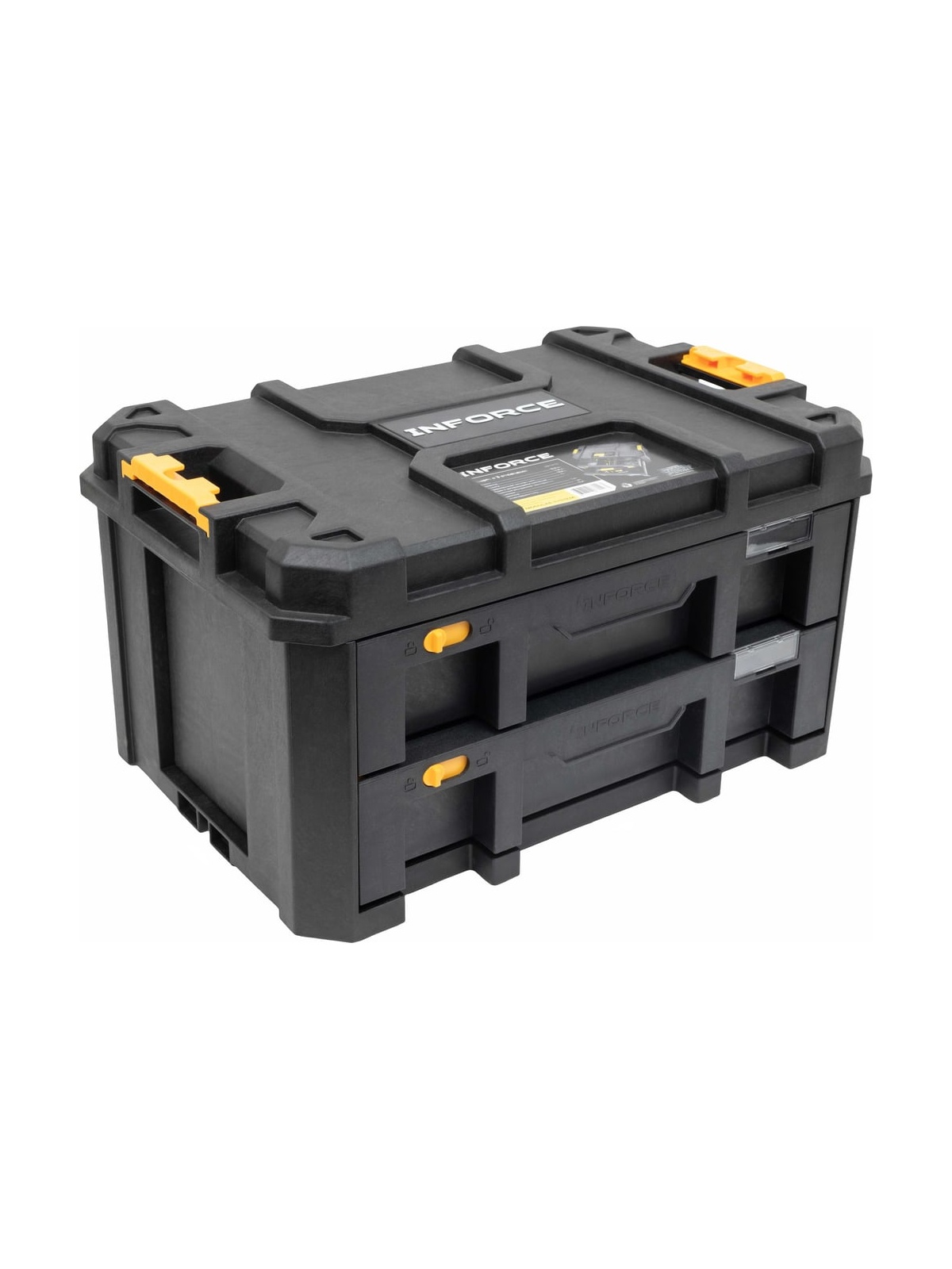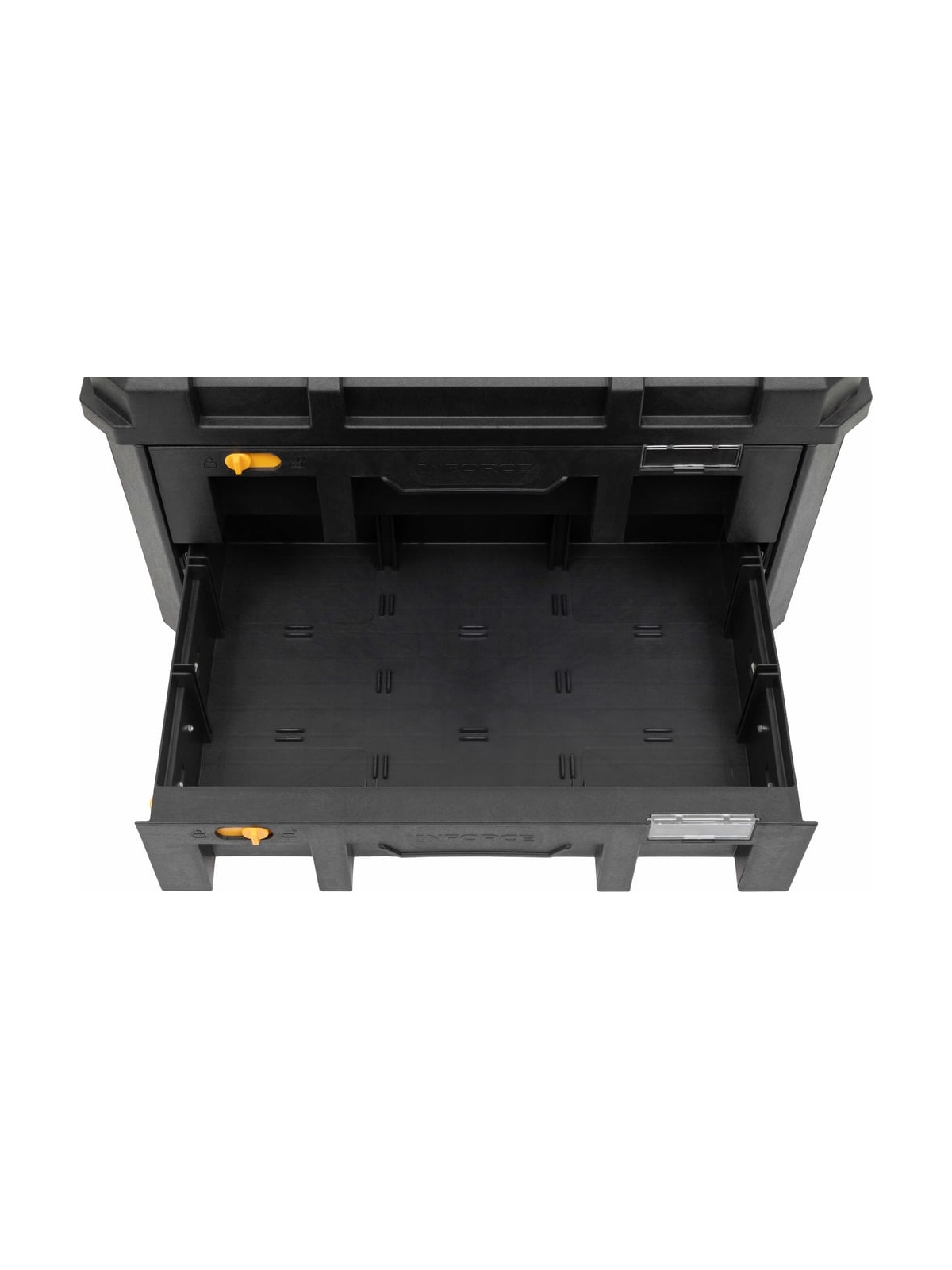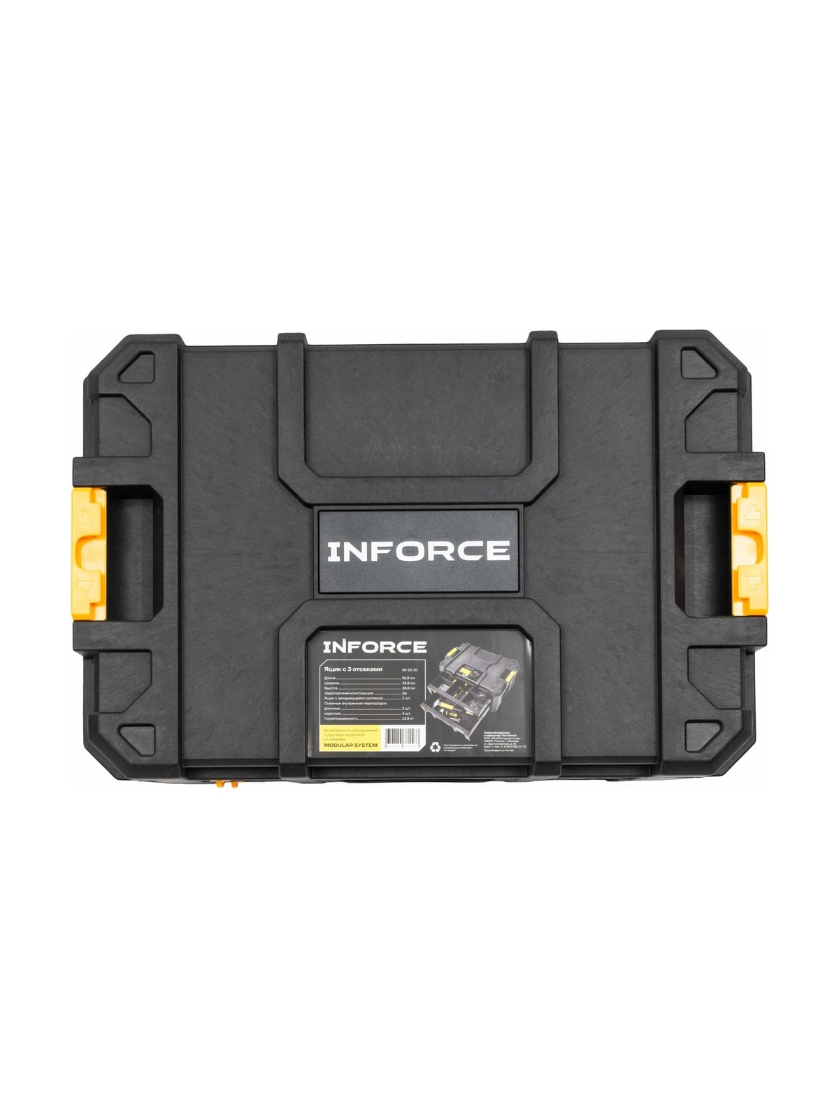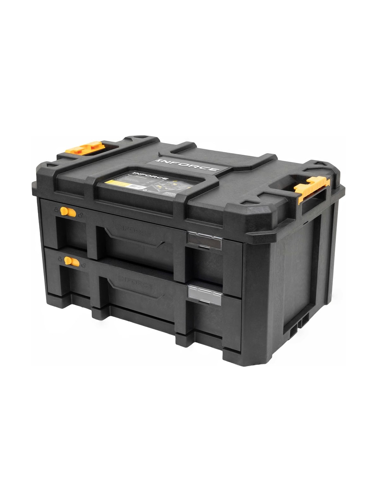 Ящик Inforce с 2 отсеками 06-20-20 обеспечивает удобное хранение и транспортировку инструментов и аксессуаров. Ящик входит в линейку системы хранения Inforce MODULAR SYSTEM. 2 выдвижные секции с переставными перегородками для организации пространства 4 длинных и 4 коротких перегородки внутри позволяют разместить мелкий инструмент и расходные материалы в одном месте Размеры выдвижных секций: 30х3,5 см Возможность блокировки выдвижных секций с помощью замка Новые защелки для скрепления модулей с интуитивно понятным принципом работы для экономии времени Новые более широкие и прочные рукоятки для переноски с улучшенной эргономикой в месте хвата Материал ящика - стойкий к падениям и ударам полипропилен