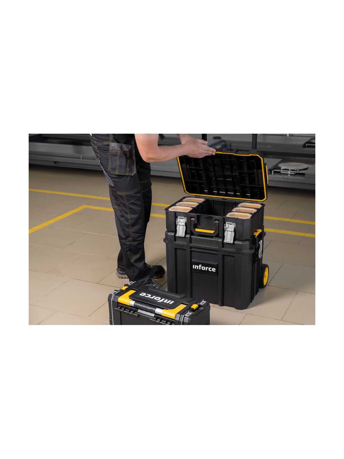 Ящик-кейс Inforce с возможностью объединения в систему MODULAR SYSTEM 06-20-12 упрощает хранение мелочей и ручного инструмента. Конструкция выполнена из прочного пластика, выдерживает значительные нагрузки. Есть замки, которые прижимают крышку и исключают случайное раскрытие. Благодаря дополнительным ребрам жесткости ящик можно нагрузить сверху и безопасно объединять в систему хранения. Грузоподъемность 40 кг.
