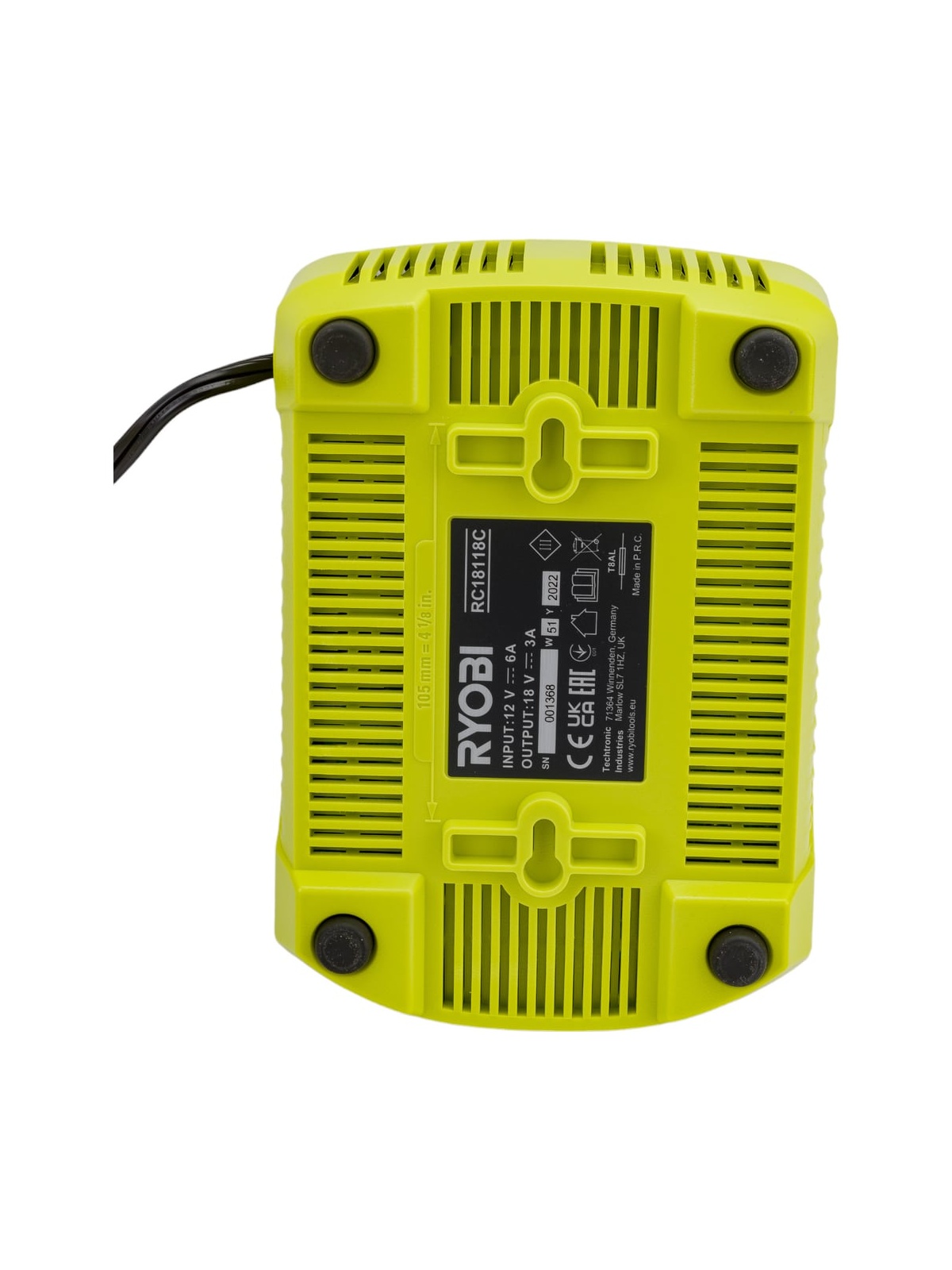 Зарядное устройство Ryobi ONE+ RC18118C 5133002893 предназначено для зарядки аккумуляторов системы One+ с напряжением 18 В от автомобильной электросети. Оснащено светодиодными индикаторами, которые информируют о состоянии аккумулятора, и режимом поддержания заряда.