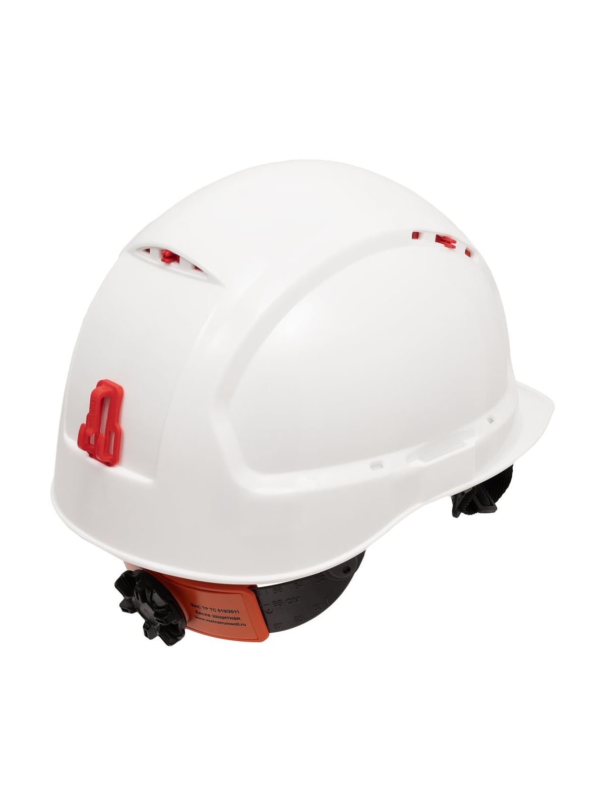 Защитная каска Tip белая храповая регулировка Gigant GHT-22 защищает голову пользователя от повреждений падающими предметами, от воздействия влаги, брызг металла, химических веществ. Имеются пазы (слоты) для крепления наушников и щитков, держатель SMART для фиксации наголовной ленты защитных закрытых очков. Корпус каски изготовлен из полипропилена с несмываемой маркировкой защитных свойств на козырьке каски Имеется дополнительное ребро жёсткости и увеличенная защита затылочной части Вентиляционные отверстия регулируются заглушками, которые являются УФ-индикаторами старения Уникальная система тройной вентиляции обеспечивает нормальную циркуляцию воздуха внутри каски Внутренняя оснастка с текстильными амортизационными лентами крепится к корпусу в 8-ми точках Регулировка по размеру головы осуществляется плавно храповым механизмом RAPID Cменная мягкая налобная лента (обтюратор) из триплированного материала Двухточечный подбородочный ремень позволяет надежно фиксировать каску на голове пользователя и регулируется по длине при помощи пряжки, имеет застежку зацеп-ловитель.