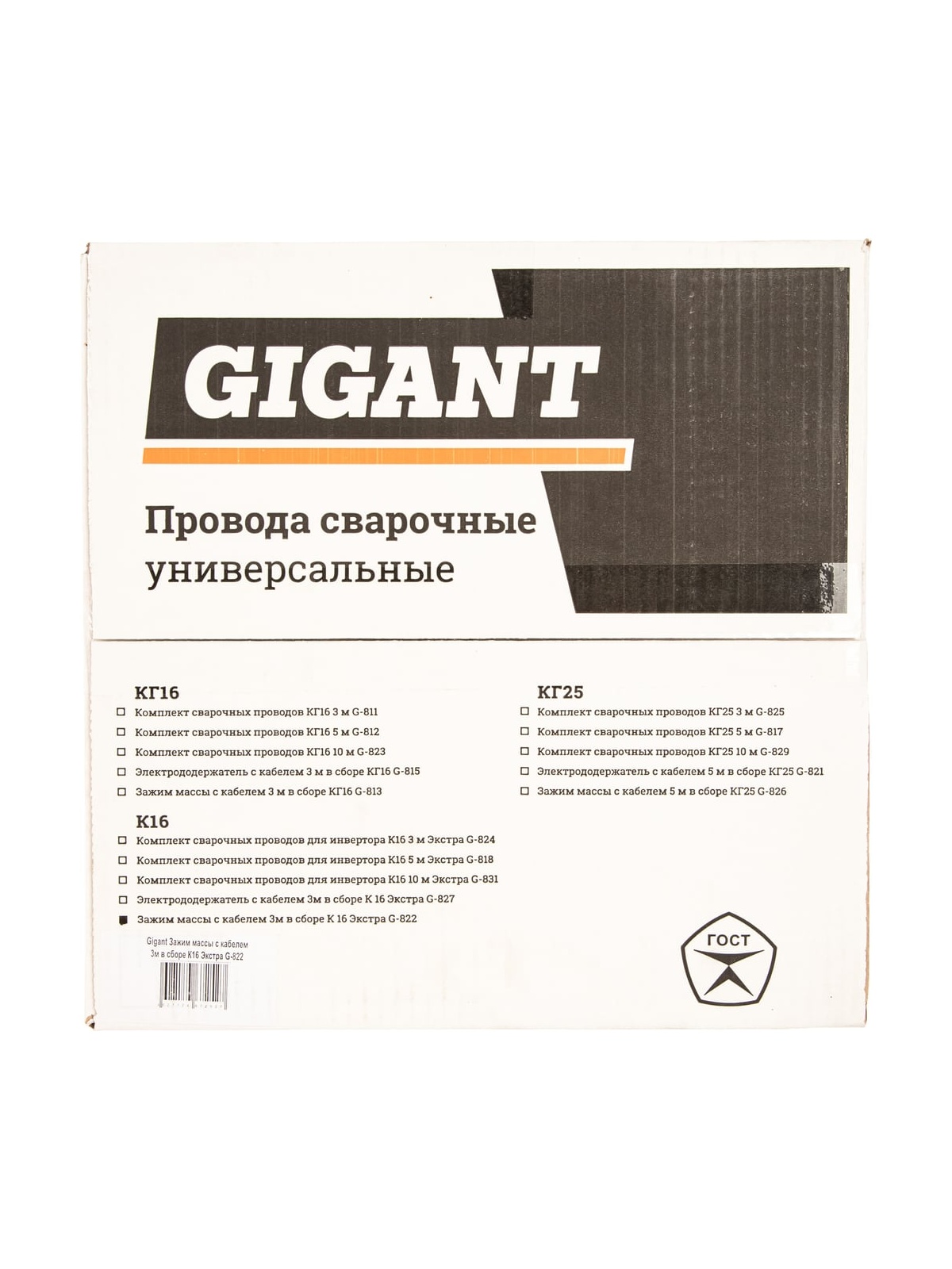 Зажим массы с кабелем 3 м в сборе К16 Экстра Gigant G-822 предназначен для соединения сварочного аппарата с землей (заземление) во время проведения сварочных работ. Оборудован магнитной клеммой. Максимальный сварочный ток - 300 А. Кабель - КГ 1х16, изготовлен по ГОСТ. Длина кабеля - 3 м. Вилка кабельная - 10-25.