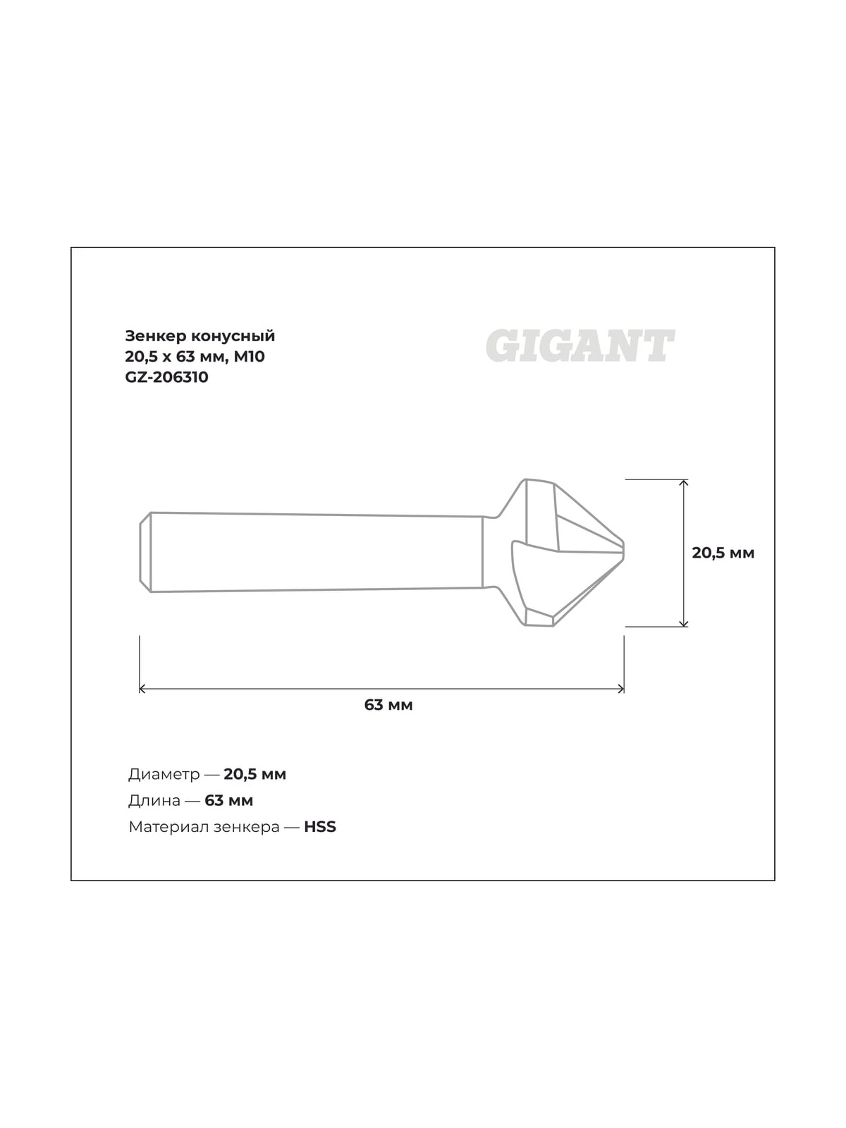 Зенкер конусный 20.5x63 мм, М10 Gigant GZ-206310 предназначен для выполнения конических отверстий в заготовках. Выполнен из углеродистой стали. Покрытие из сплава кобальта позволяет использовать инструмент при ударных нагрузках и высоких температурах.